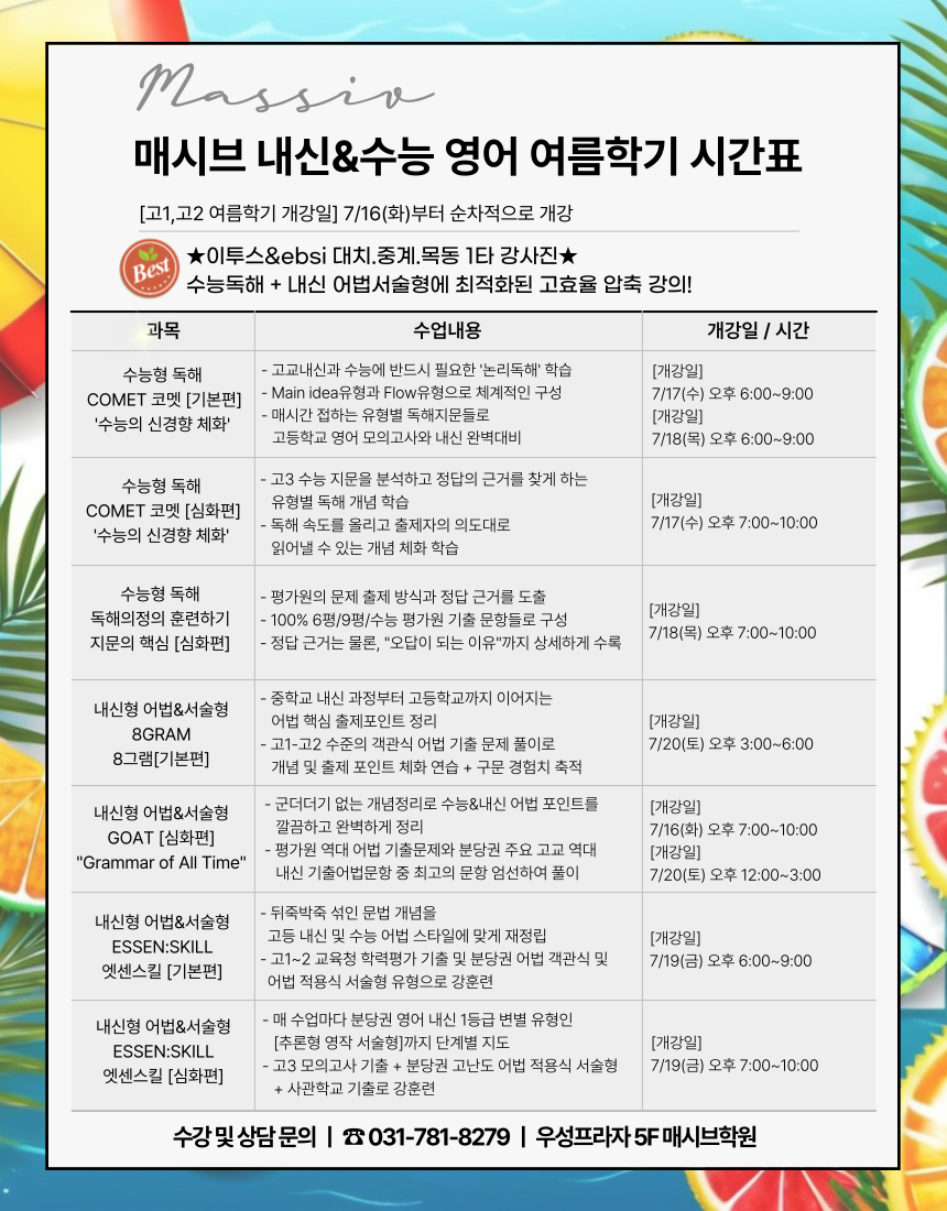 ★고등영어 개강일 : 7/16(화)부터 순차적으로 개강★