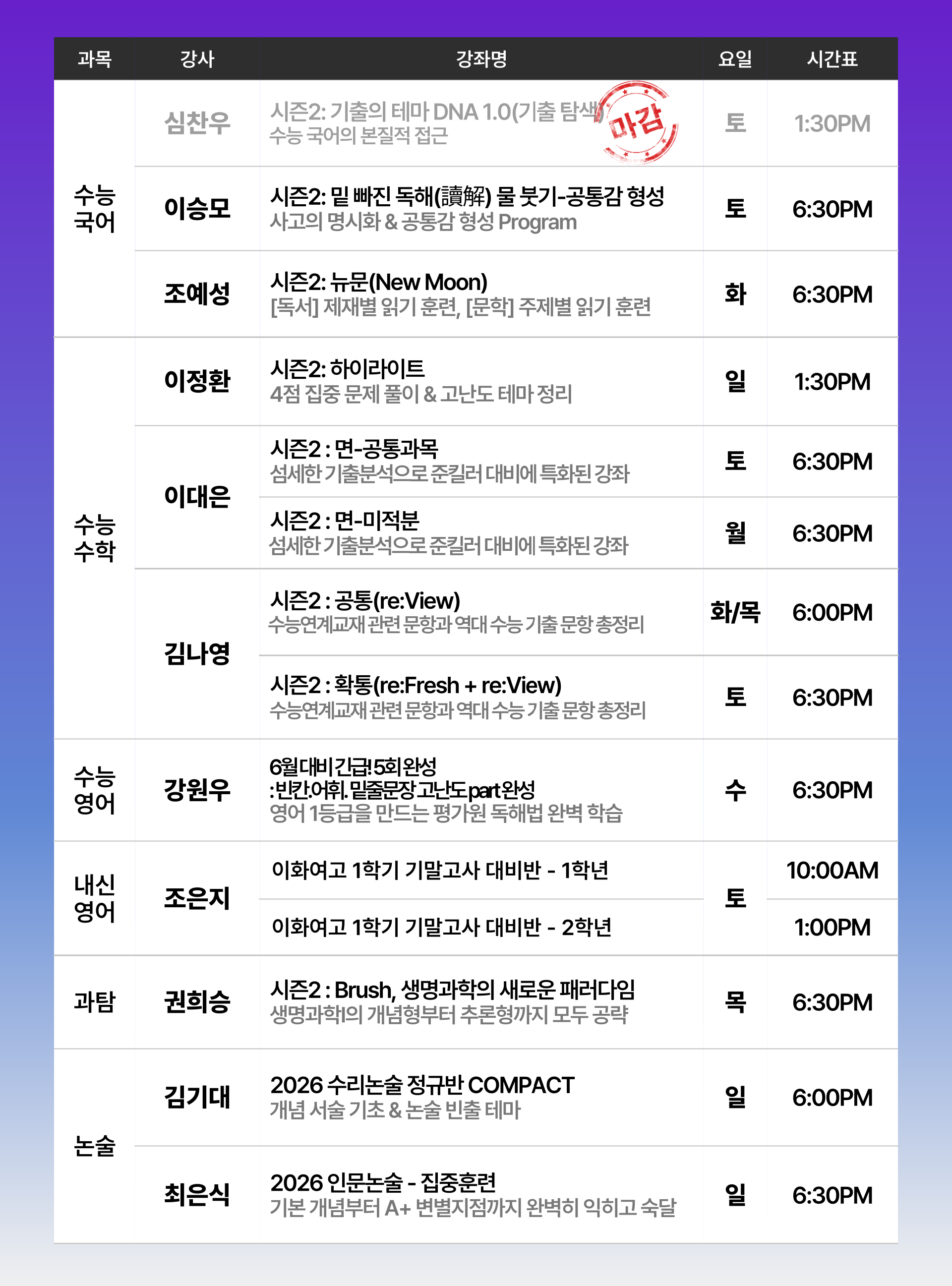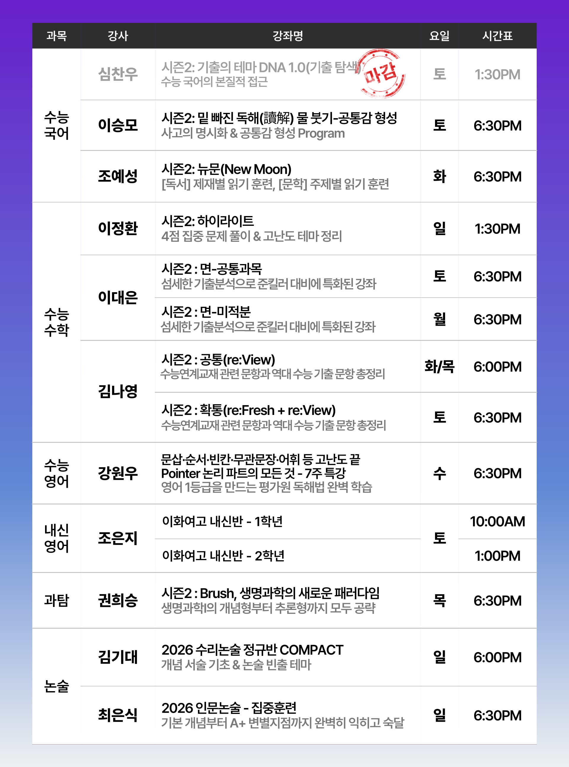 수능관 대표 강좌🏆